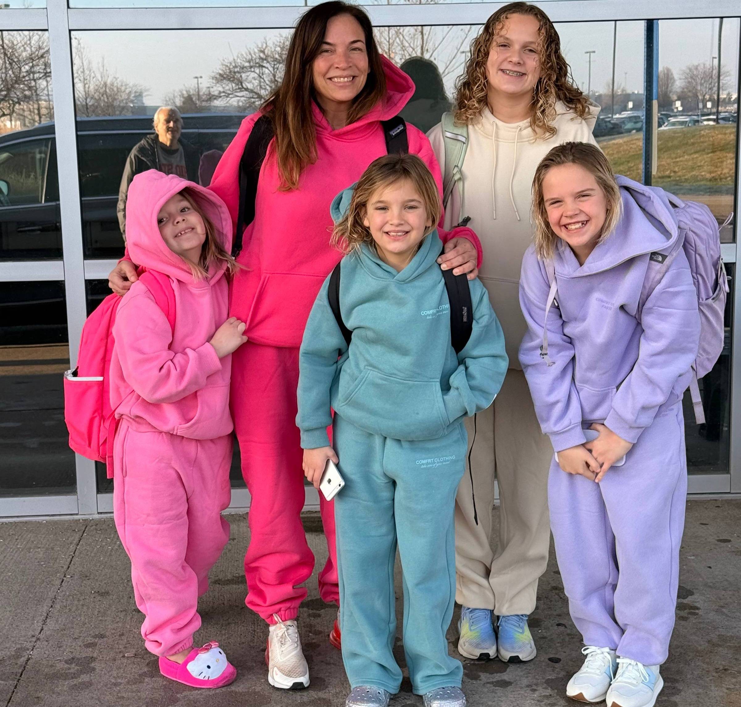 We all deserve to be on higher ground. Happy New Year. I'm not doing the whole "new year new you" thing because honestly? You're probably the same person you were last week. (I am just a less well rested person after 19 days of winter break, replete with a magical Christmas, a beach trip, 723 playdates/sleepovers/outings for the 4 girls, 17 swim team practices, and (sadly) the passing of our beloved dog. It’s been an emotional few weeks.) Sloane convinced us to wear matching sweatsuits....